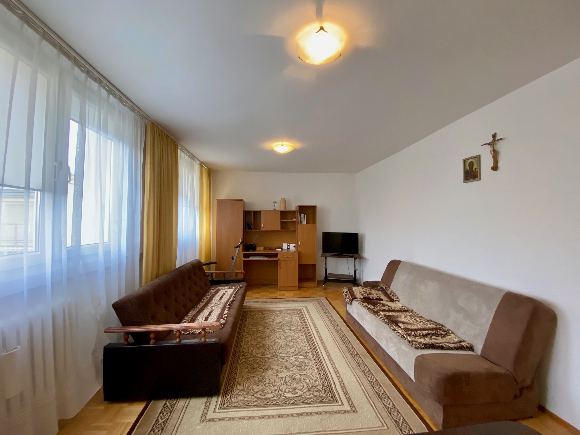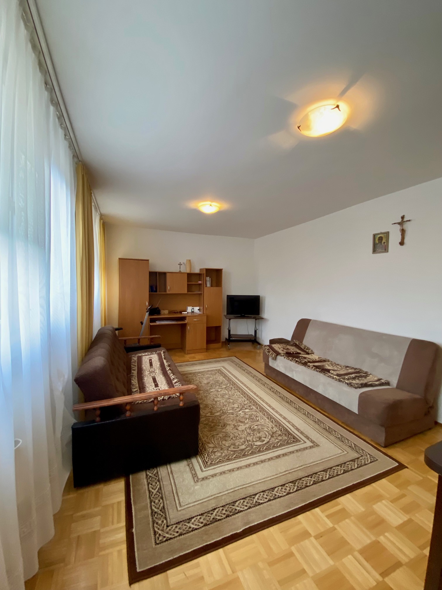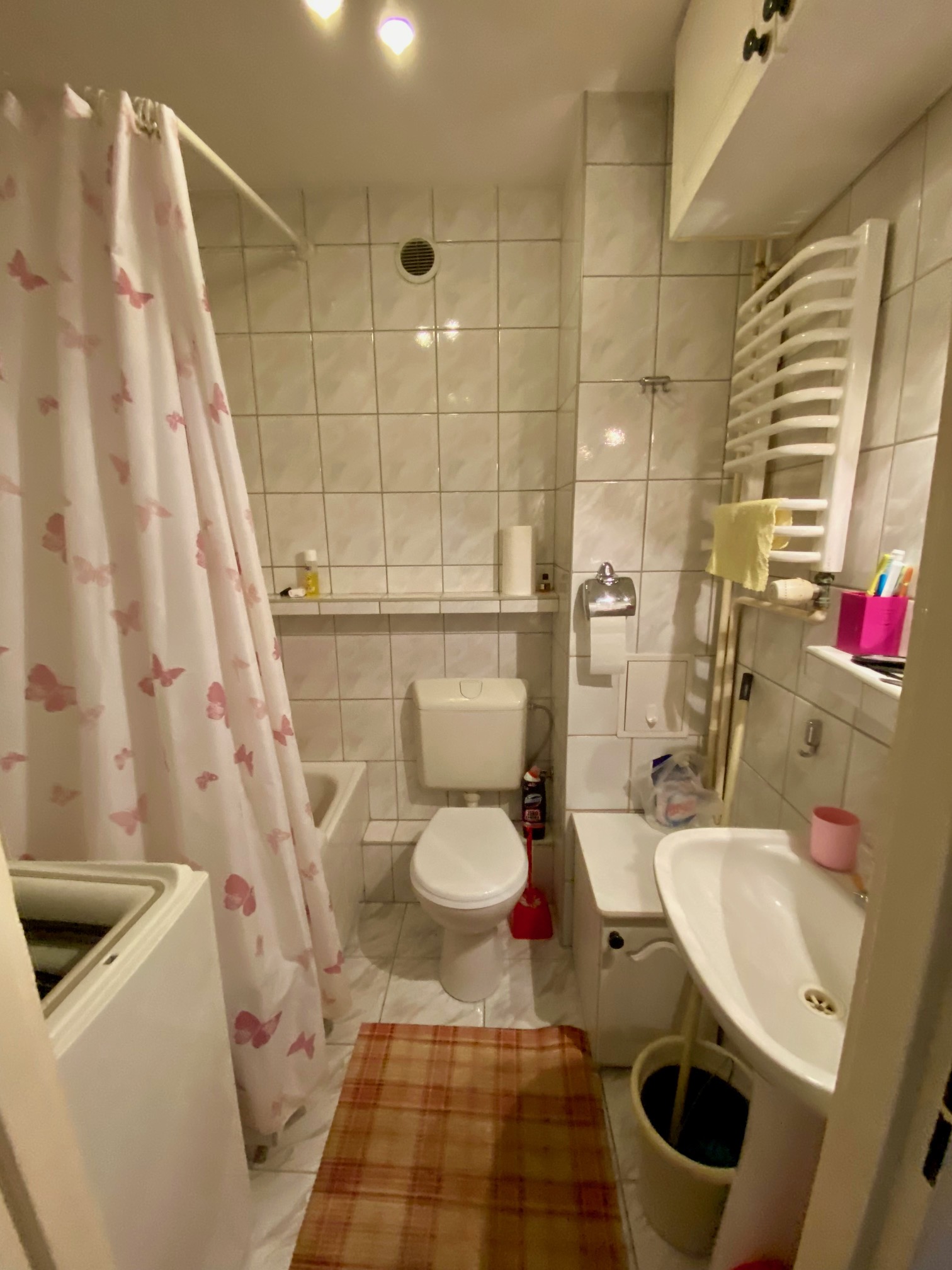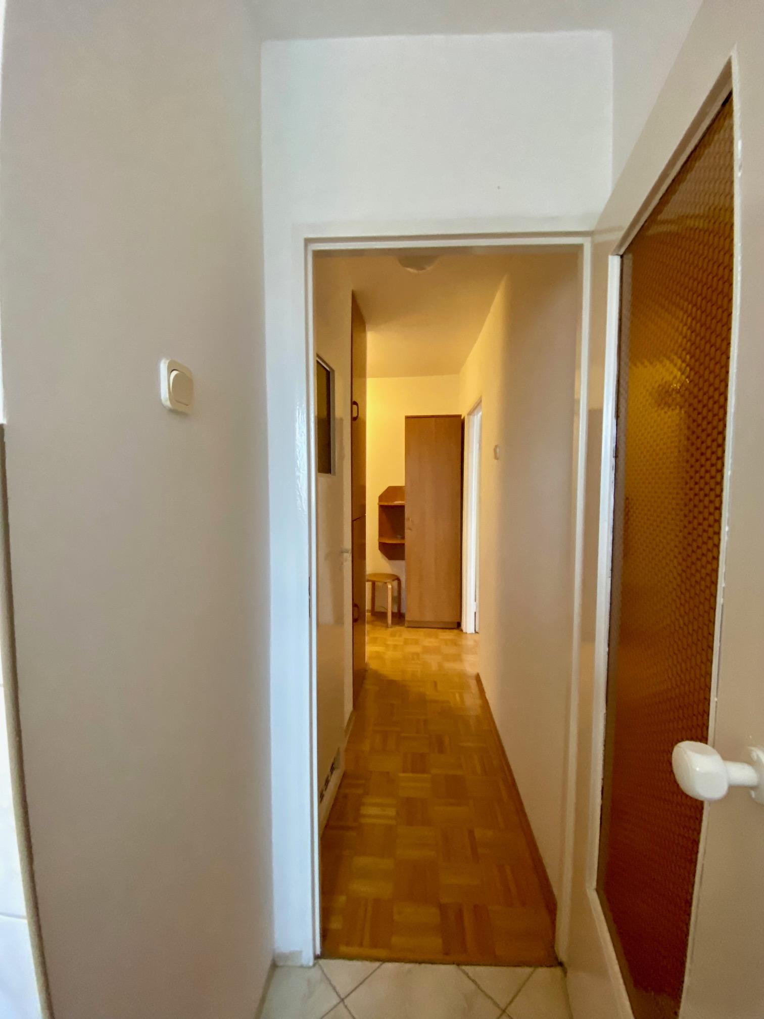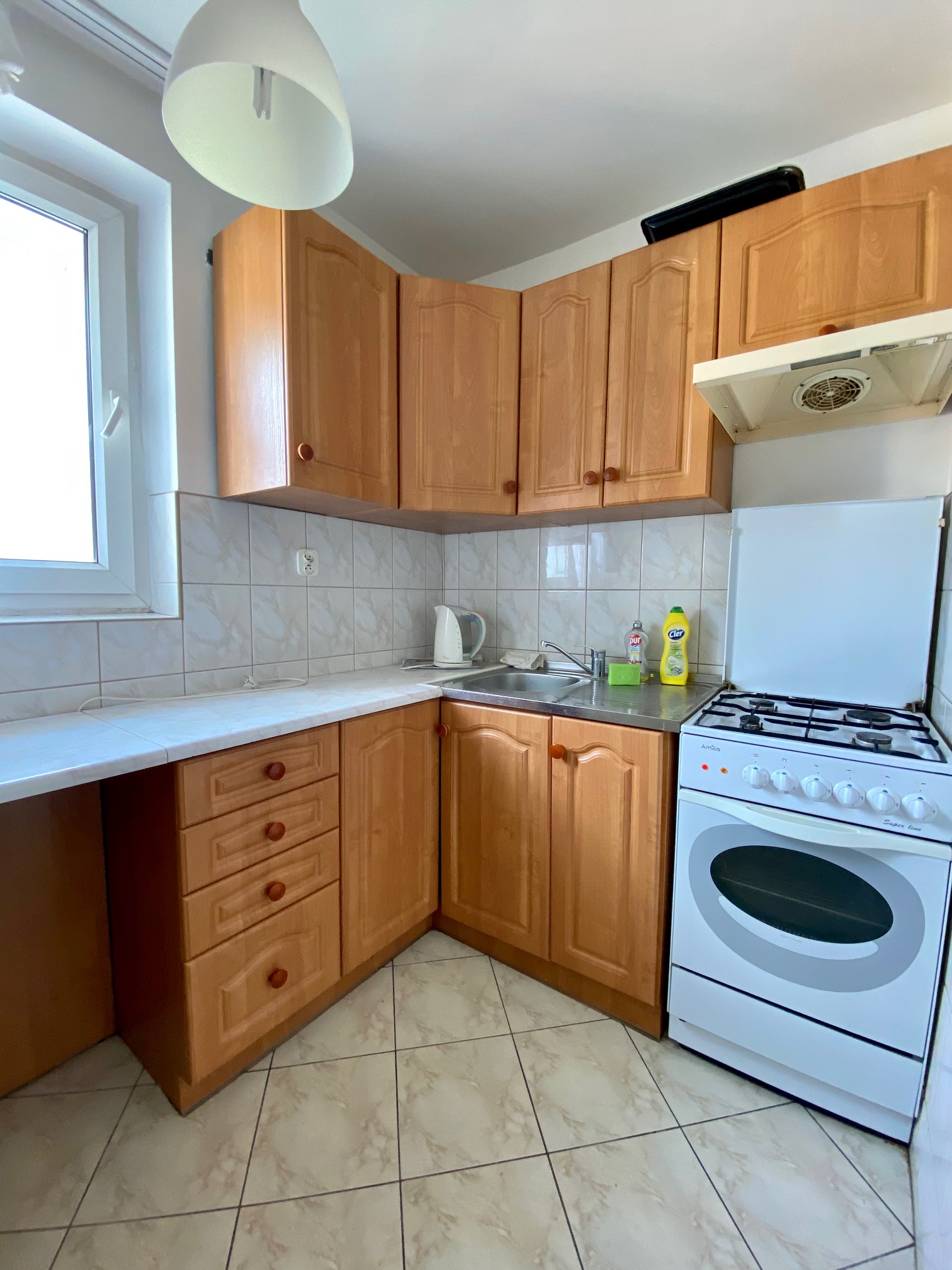 Kawalerka o powierzchni 35 m2 składająca się z pokoju w kształcie prostokąta z rozmieszczeniem okien pozwalającym na zrobienie dwóch małych pokoi w pełnym rozkładzie, malutkiej kuchni z oknem, łazienki z małą wanną i przedpokoju. Do mieszkania przynależy piwnica.